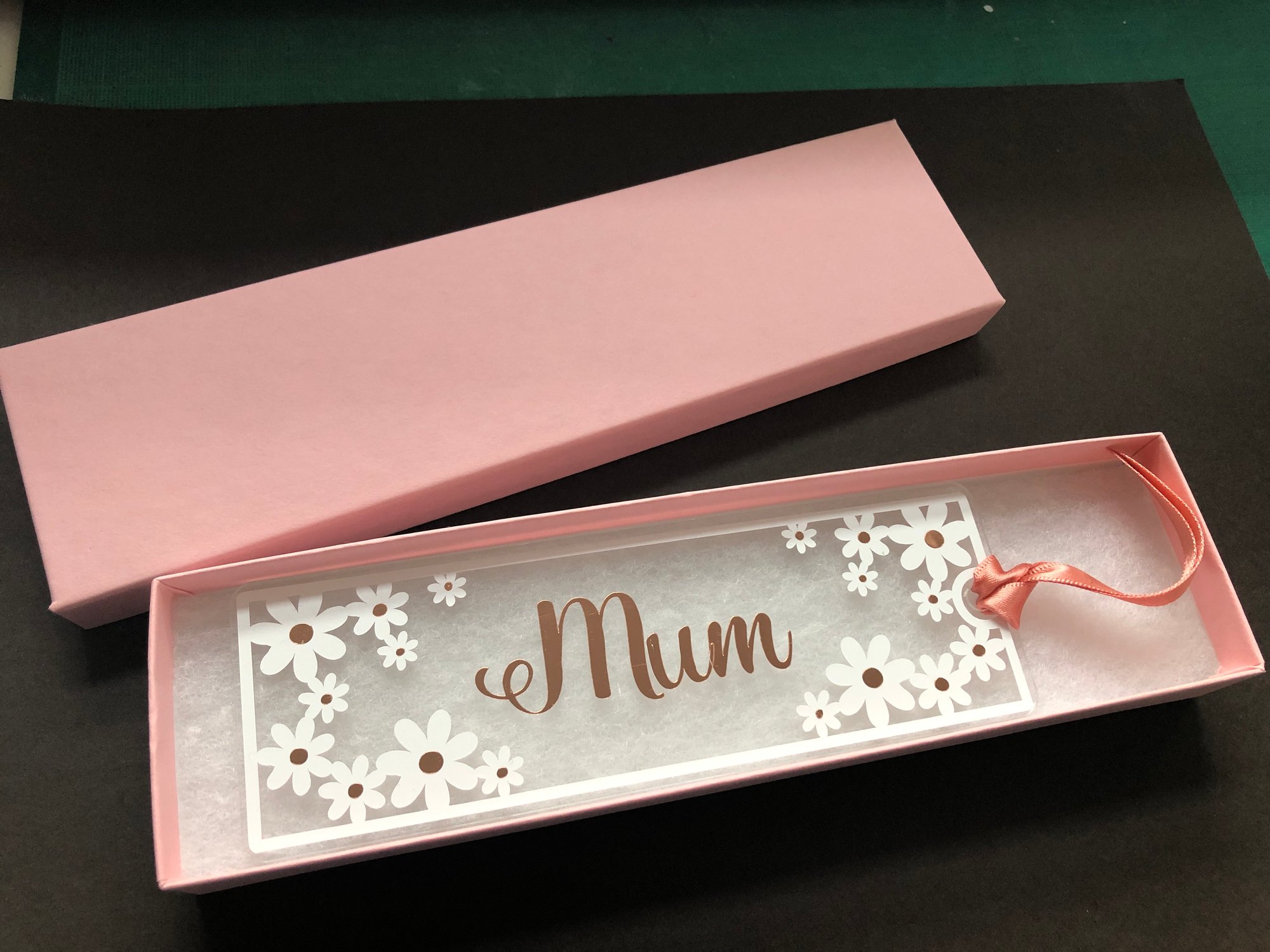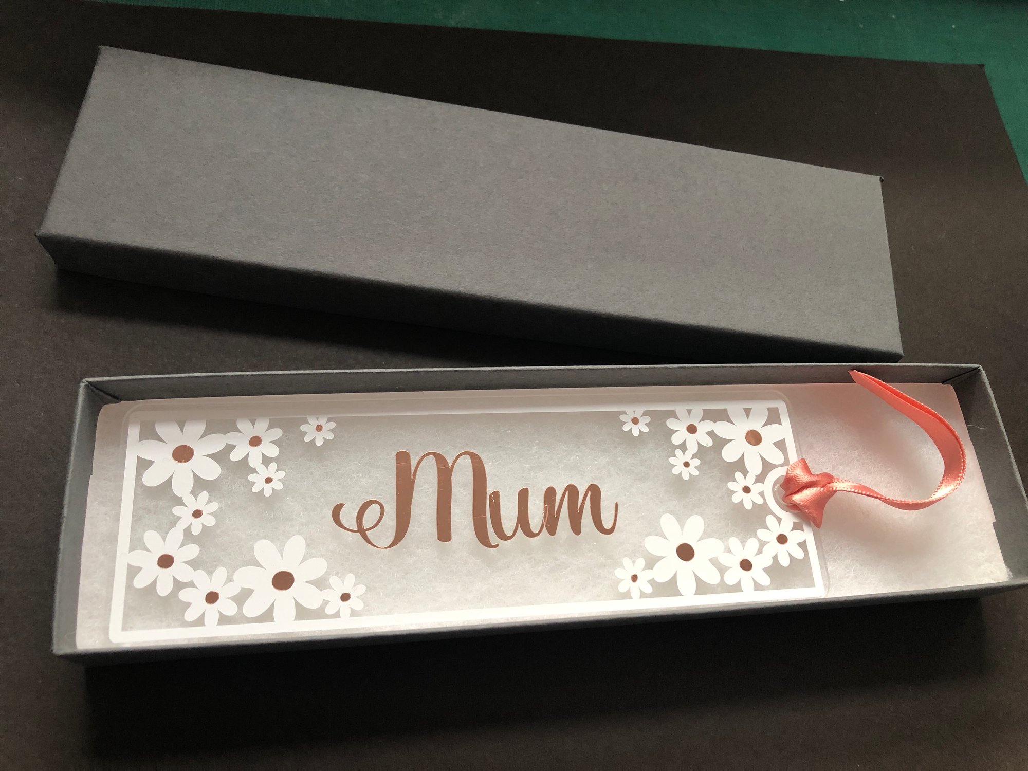A clear acrylic bookmark, with white daisy flowers and personalised with a name of your choice. Please write the name required in the 'notes for seller' box.