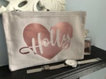 These made-to-order gorgeous medium make up/toiletries bags, will be personalised with a name of your choice. Bags are available in grey, black or navy, and are 22x16cm.
